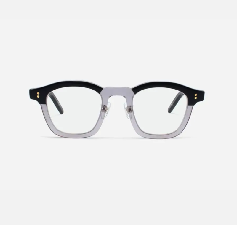 カラーは”BKGY(ブラックグレー)”。重厚なブラックと肌馴染みの良いグレーのツートーンは、顔立ちを引き締めつつも、決して強くなりすぎない絶妙なバランス。丁寧な研磨から生まれる柔らかなエッジが、光を美しく反射します。